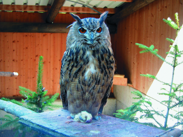 In neun Volieren werden hauptsächlich einheimische Vogelarten gehalten und gepflegt. Die Tiere werden durch ausgebildete Helfer*innen und Pfleger*innen regelmässig gefüttert und auf ihren Gesundheitszustand kontrolliert.