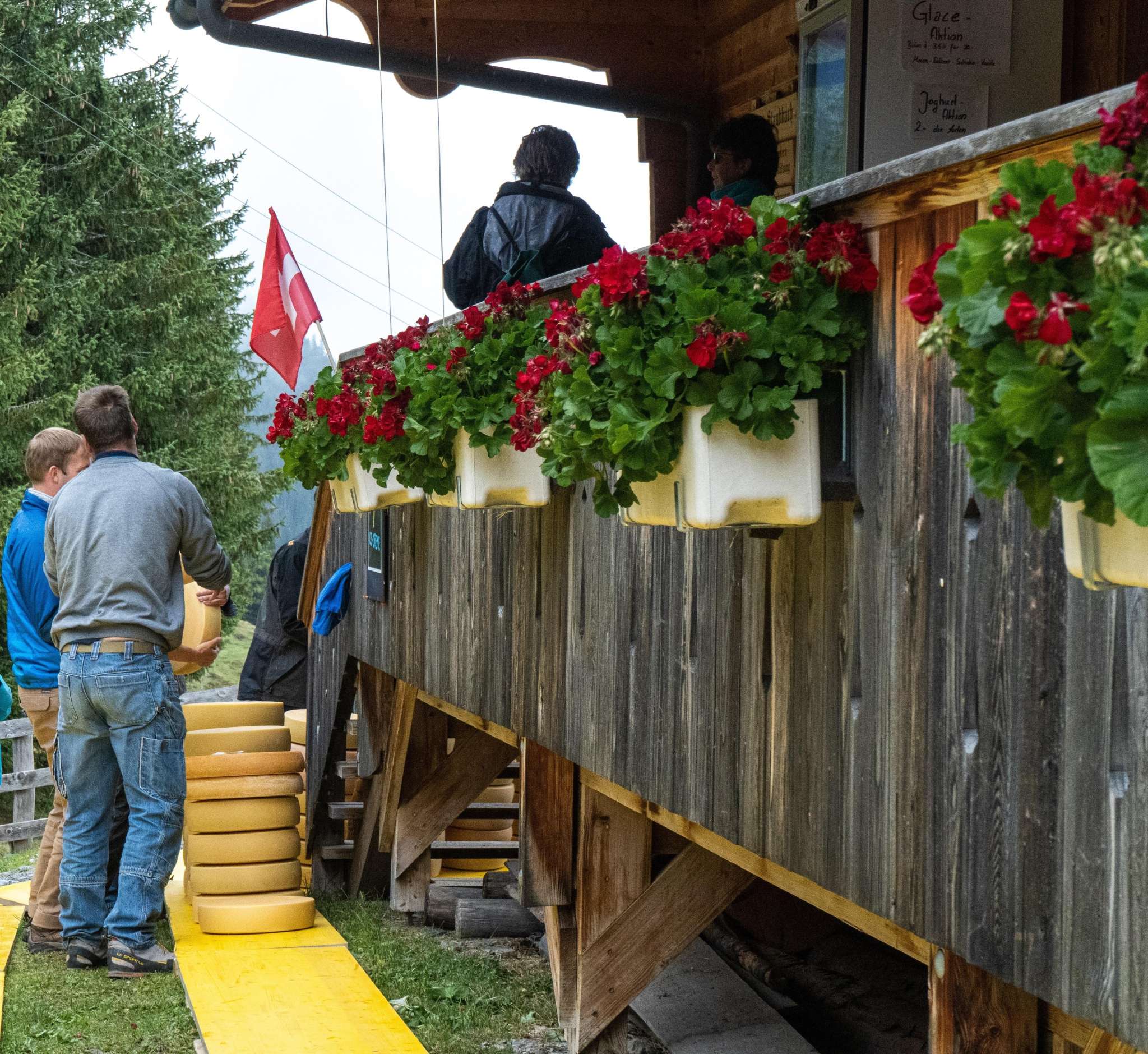 Der Käse der auf der Alp während dem Sommer produziert wurde, wird an die Bauern verteilt, die Ihre Kühe für den Sommer auf die Alp gebracht haben. Verkaufstand mit den Alp-Produkten, Festwirtschaft ,Folklore Musik mit dem Jodlerclub