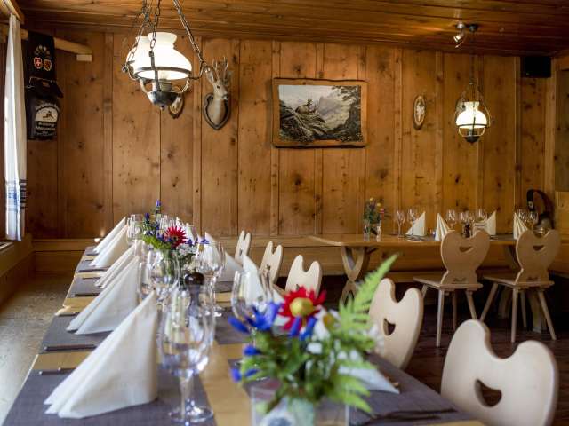 Die rusikale Alpenküche des Restaurants, gepaart mit Tradition und Innovation, überrascht die Gäste mit frischen, saisonalen Gerichten - serviert auf der wunderschönen Terrasse oder in der gemütlichen Gaststube.