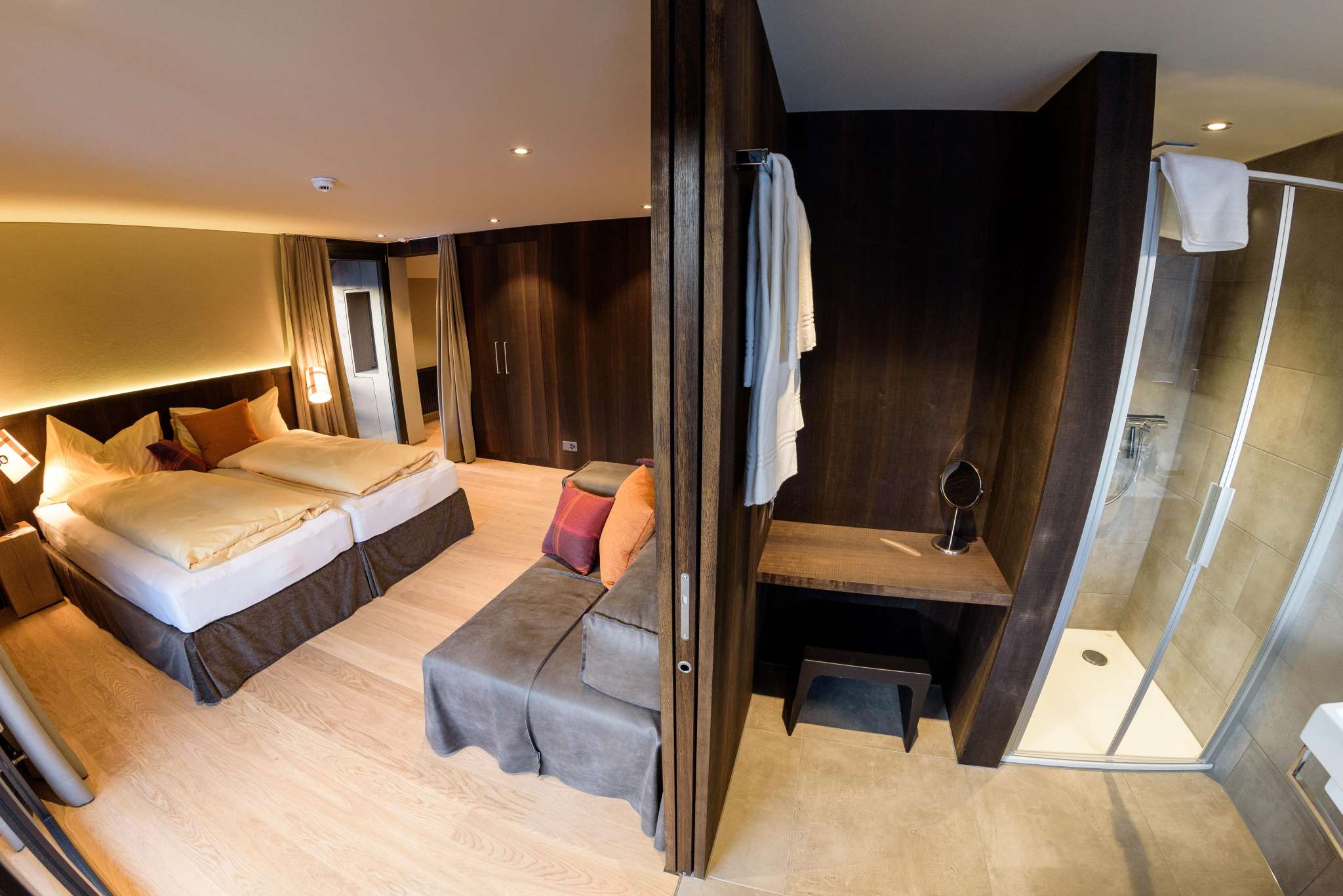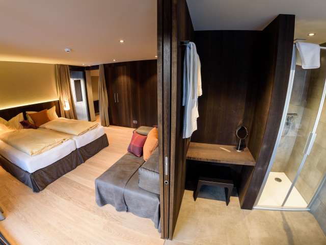 • Deluxe-Zimmer mit Boxspring-Doppelbett, Reduit, Sofa, Balkon und