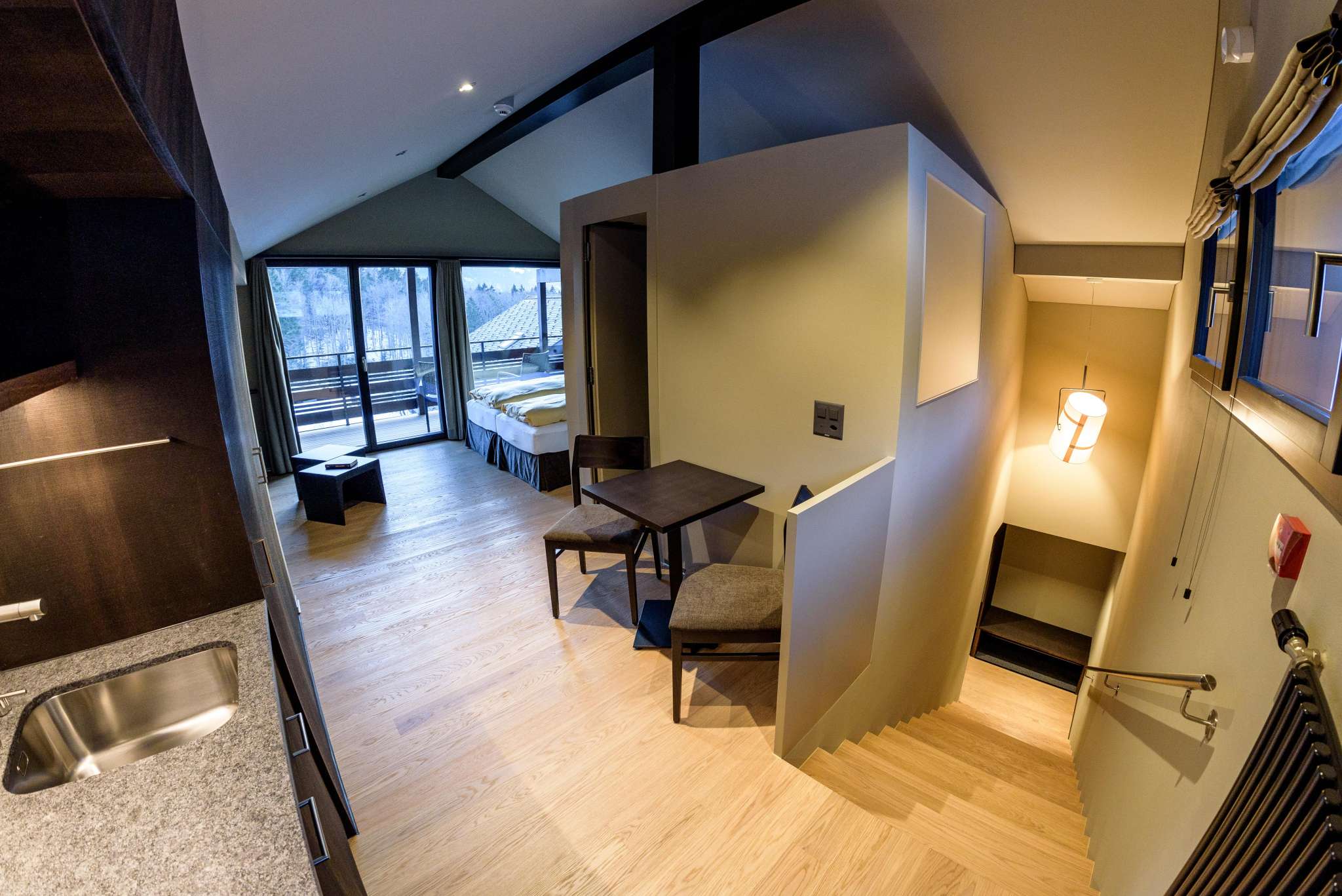 • Junior-Suite mit Boxspring-Doppelbett, Balkon, Kochnische, großem