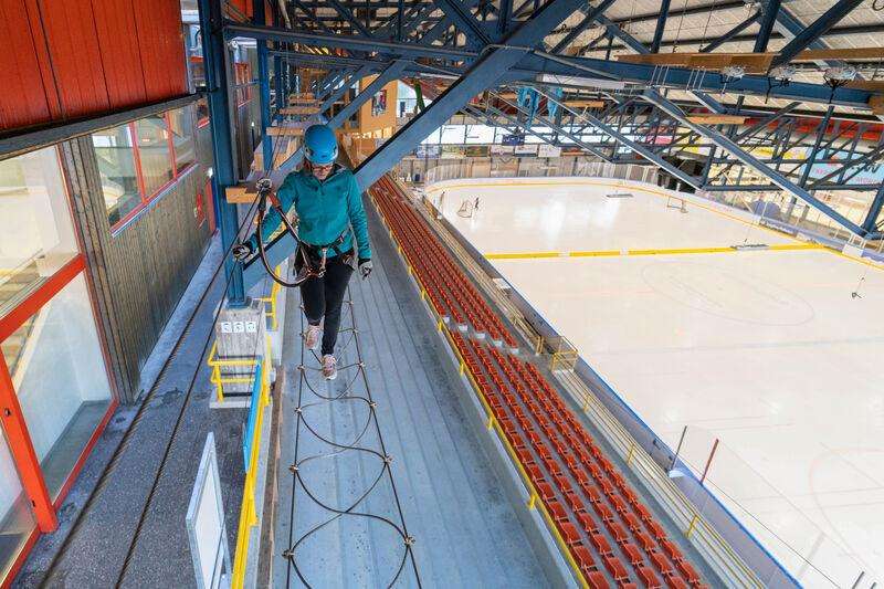 Vom einfachen «Eiger Westgrat» bis zur schwierigen «Eiger Nordwand» sorgen im ersten Indoor Seilpark der Schweiz fünf Routen für Abenteuer in luftiger Höhe. Unter dem Dach der Eishalle balancierst, kletterst oder fliegst du über teils wackelige, teils originelle Elemente. Nach kompetenter Einführung durch das Personal wird der Seilpark individuell begangen.