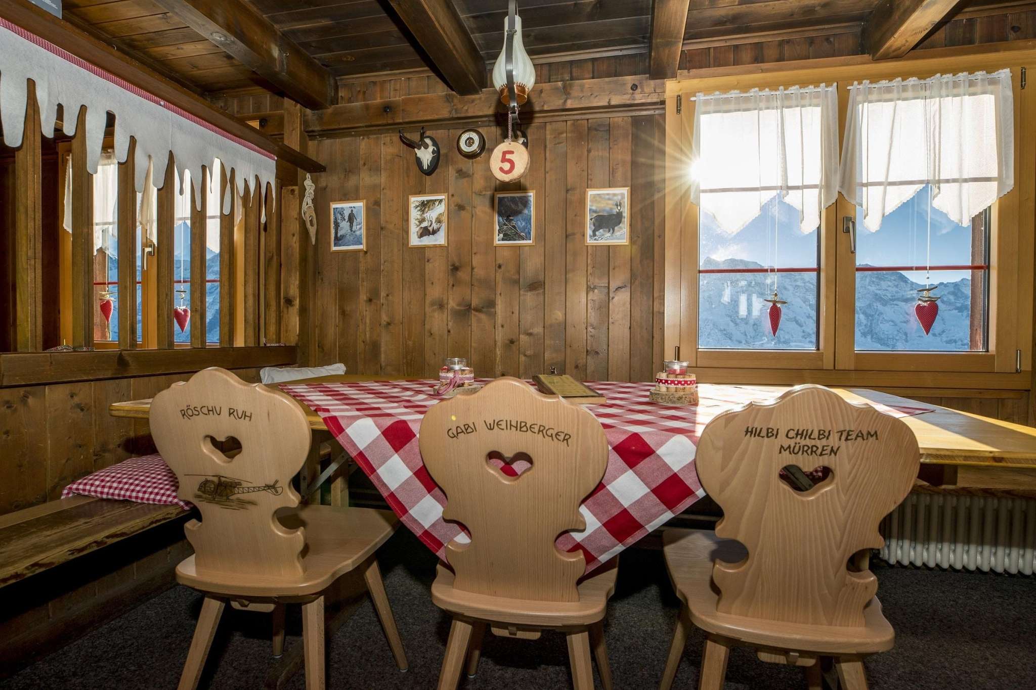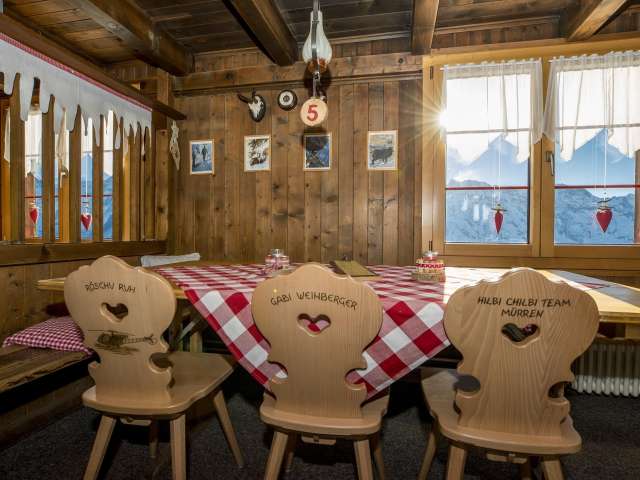 Im Winter erreichst du die Schilthornhütte innert weniger Minuten mit dem Sessellift Muttleren oder Kandahar. Zu Fuss ist sie ab Station Birg in ca. 40 Minuten erreichbar (bergab). Oder aber ab Mürren via Kanonenrohr in rund 2 h 15 min (bergauf).