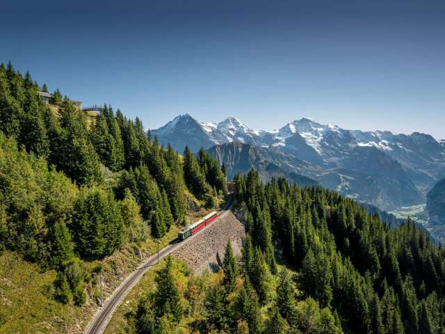 Die Zahnradbahn überwindet auf ihrer 7,255 km langen Fahrt von Wilderswil auf die Schynige Platte 1420 Höhenmeter.