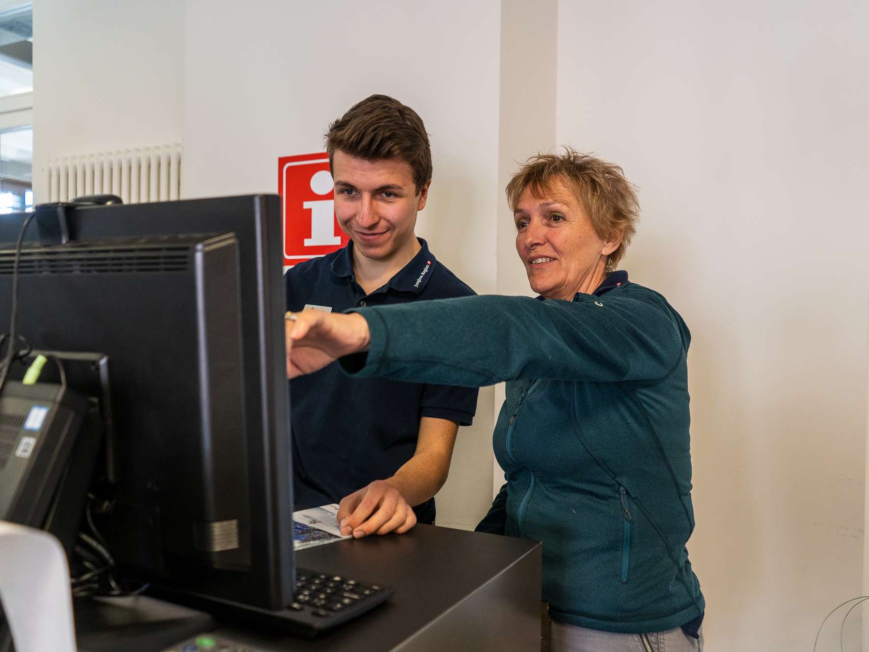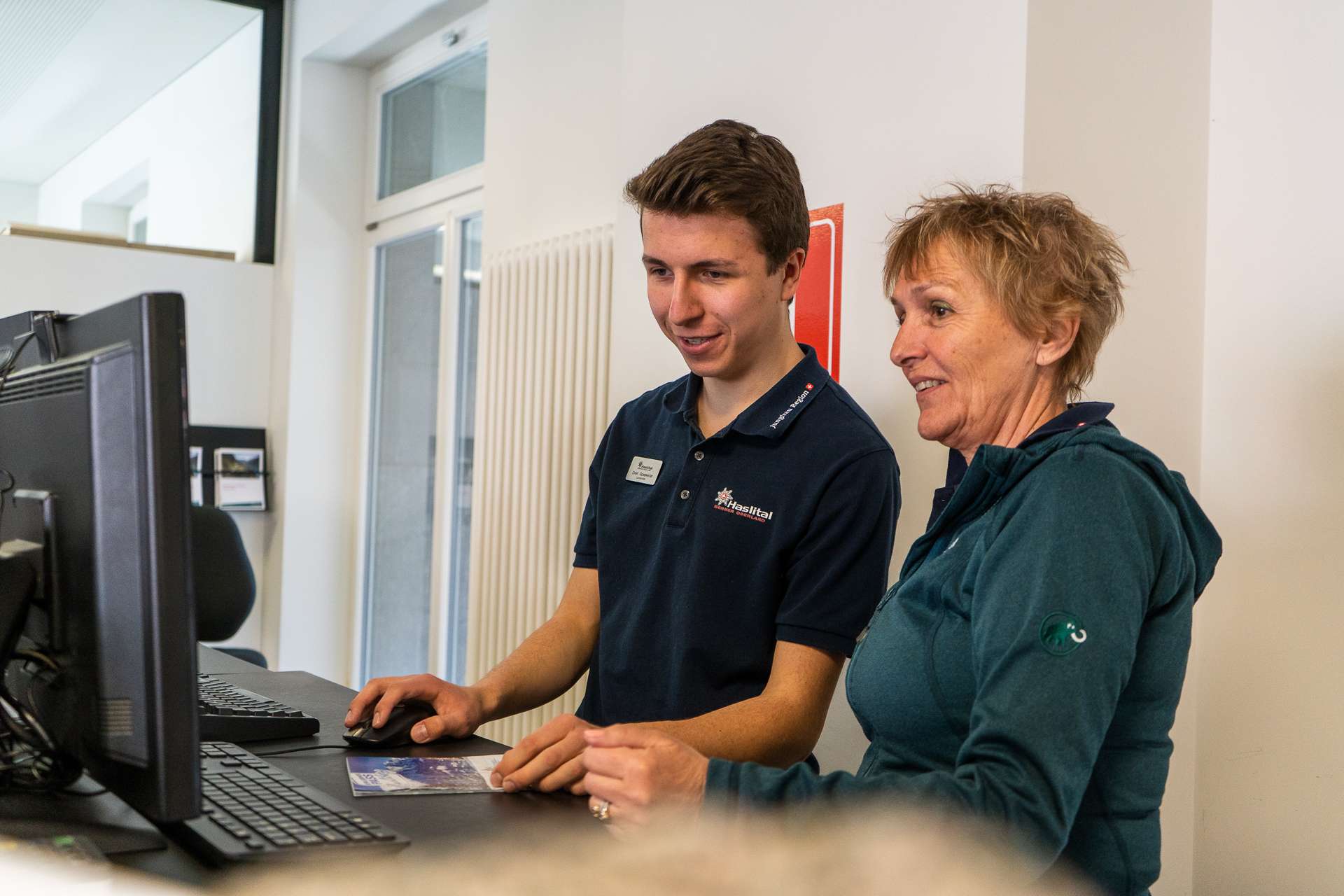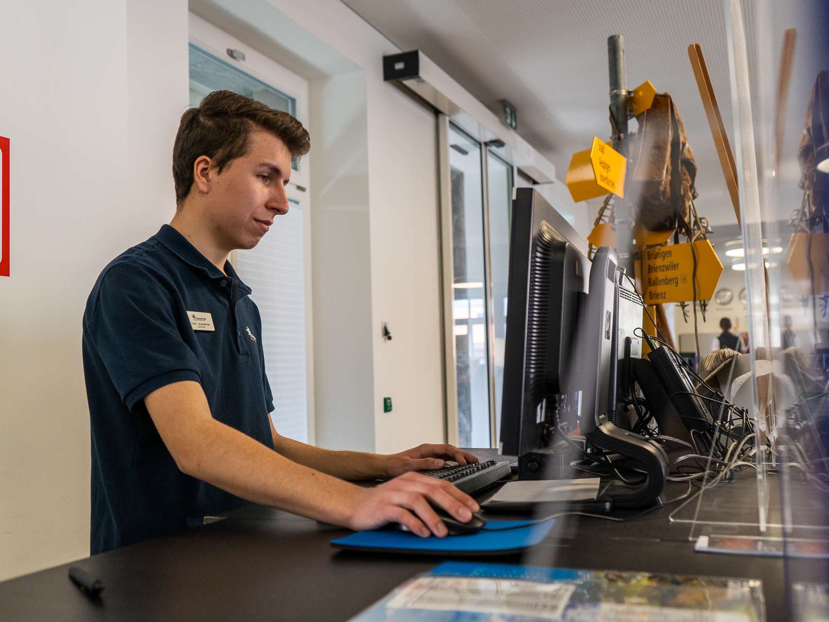 Aber ich will mich nicht beschweren, die meisten Kundinnen und Kunden sind sehr nett und zuvorkommend. Sie zeigen Verständnis, wenn ich als Lernender gewisse Arbeiten noch nicht so schnell erledigen kann wie meine Arbeitskolleginnen und Arbeitskollegen. Schliesslich musste ich am Anfang meiner Lehre gleich sehr viele Arbeitsabläufe erlernen. Zum Beispiel den Ticketverkauf der Bergbahnen und der Zentralbahn oder wie man den Kunden eine professionelle Beratung bieten kann. Ich muss zugeben, dass ich am Anfang mit gewissen Arbeiten etwas Mühe hatte, aber wie heisst es so schön: «Übung macht den Meister». Na gut, als Meister würde ich mich jetzt noch nicht bezeichnen, aber ich glaube, dass ich meinen Anfängerstatus langsam loswerde. Was mir auch entgegenkommt: Die Lehre bietet sehr viel Abwechslung, so dass ich nicht gleich auf jedem Gebiet ein Experte sein muss und kann. Das ist auch gut so. Immer wieder kommen neue spannende Aufgaben auf mich zu. Wie zum Beispiel jetzt gerade, wo ich diesen Artikel schreiben darf.