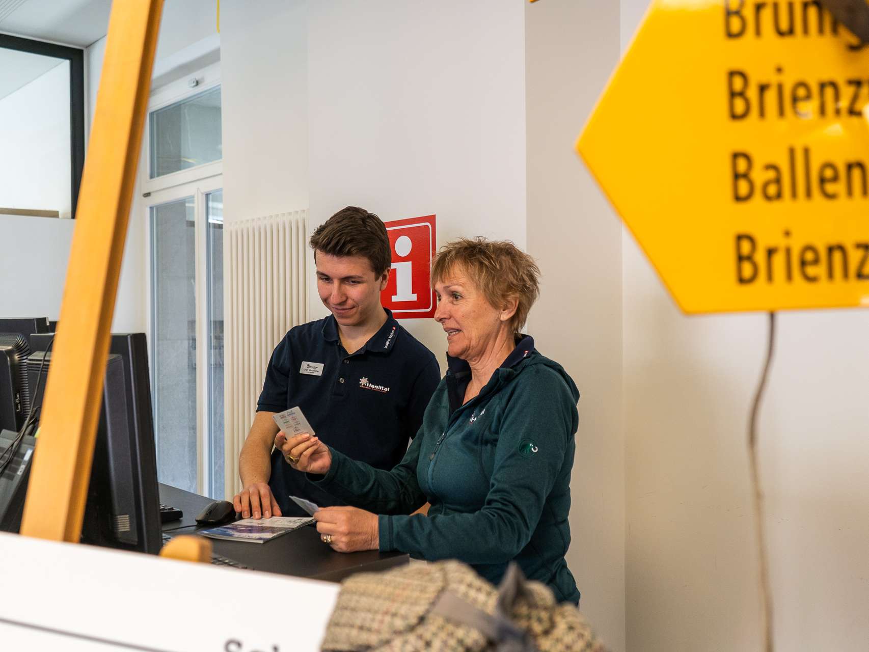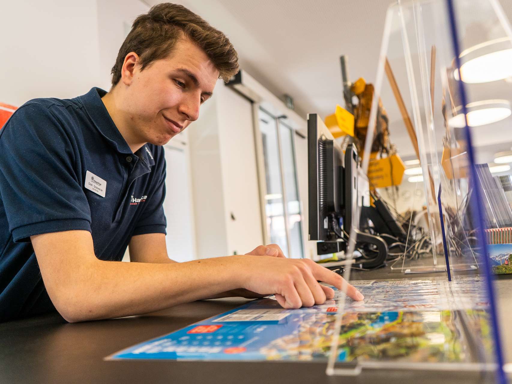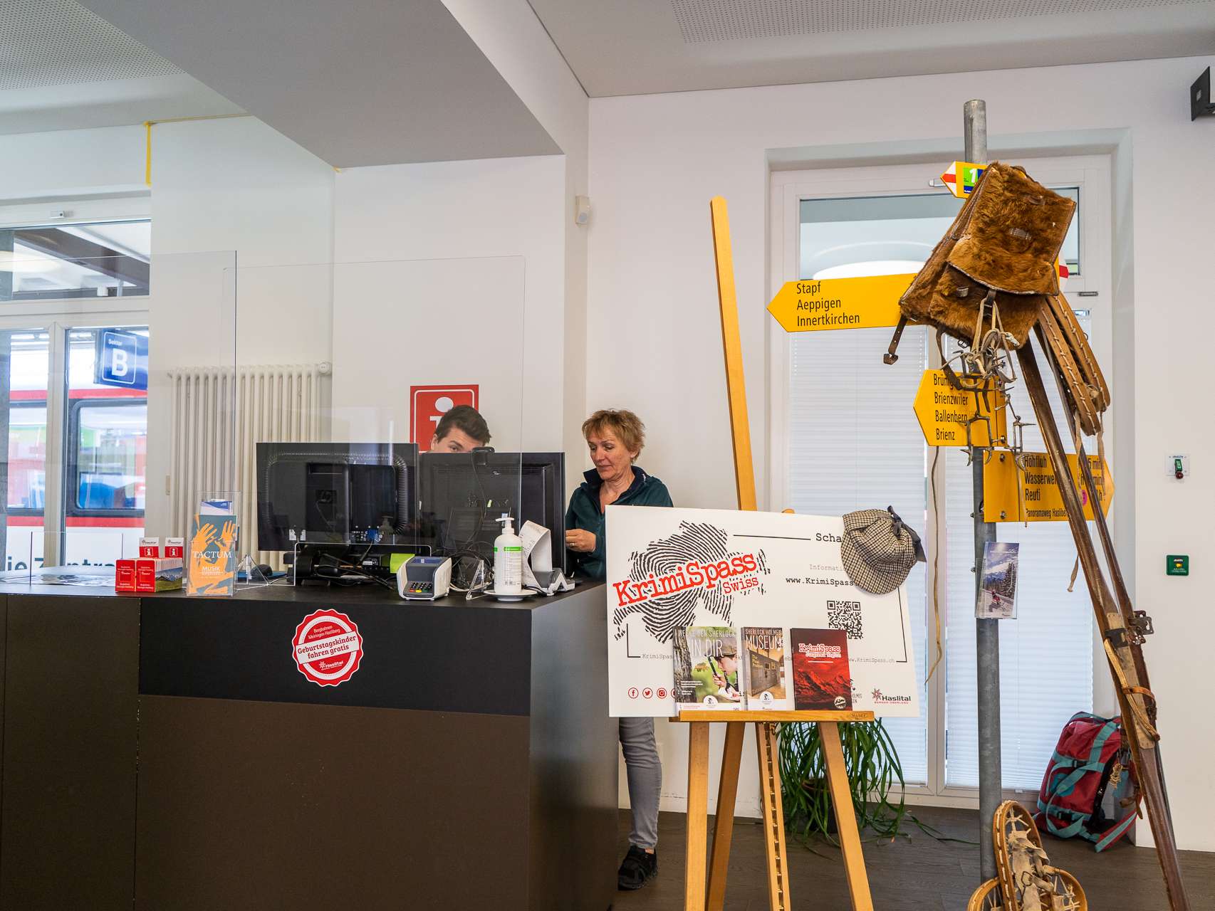 Aber ich will mich nicht beschweren, die meisten Kundinnen und Kunden sind sehr nett und zuvorkommend. Sie zeigen Verständnis, wenn ich als Lernender gewisse Arbeiten noch nicht so schnell erledigen kann wie meine Arbeitskolleginnen und Arbeitskollegen. Schliesslich musste ich am Anfang meiner Lehre gleich sehr viele Arbeitsabläufe erlernen. Zum Beispiel den Ticketverkauf der Bergbahnen und der Zentralbahn oder wie man den Kunden eine professionelle Beratung bieten kann. Ich muss zugeben, dass ich am Anfang mit gewissen Arbeiten etwas Mühe hatte, aber wie heisst es so schön: «Übung macht den Meister». Na gut, als Meister würde ich mich jetzt noch nicht bezeichnen, aber ich glaube, dass ich meinen Anfängerstatus langsam loswerde. Was mir auch entgegenkommt: Die Lehre bietet sehr viel Abwechslung, so dass ich nicht gleich auf jedem Gebiet ein Experte sein muss und kann. Das ist auch gut so. Immer wieder kommen neue spannende Aufgaben auf mich zu. Wie zum Beispiel jetzt gerade, wo ich diesen Artikel schreiben darf.