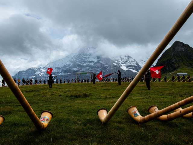 The Grindelwald-Männlichen gondola, the Wengen-Männlichen cableway and the Männlichen Berghaus invite you to the alphorn and flag-waving event.