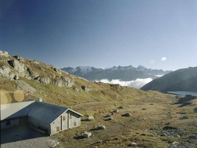 You are your own master and chef in the alpine holiday hut Bäregg. It is located directly on Lake Trübtensee and can be reached via the six-kilometre panoramic road from the Grimsel Pass. Groups - whether schools, climbing camps, families or friends who want to experience nature together - feel particularly at home here in the high alpine mountain world. They appreciate the hut with its simple mattress dormitory as an ideal starting point for hikes and climbs.