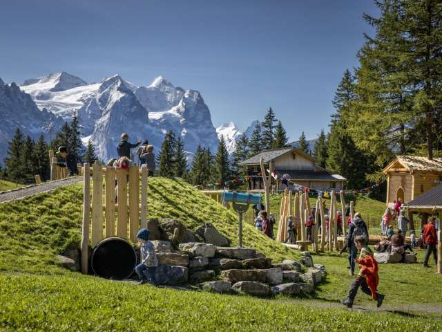The Bidmi dwarf playground is located at the sunny Bidmi middle station in Hasliberg, directly on the mountain railway line from Reuti to Mägisalp. Inspired by the mythical Hasli dwarfs, it is lovingly designed with wooden huts, climbing towers and slides. Children can immerse themselves in the fantasy world of dwarves, experience adventures and discover nature. Meanwhile, parents can enjoy the magnificent view over the Haslital valley and the surrounding mountains.