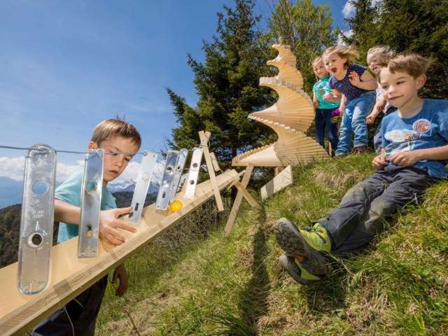 12 exciting and varied marble runs await you along the hiking trail from the Bidmi middle station to the Reuti bottom station. The courses were built by local timber construction companies. It takes around an hour to walk from Bidmi to Reuti. The hiking trail is not suitable for pushchairs.