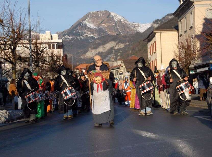 During this week, the various Trychel processions drive away the evil spirits with their impressive parades through the villages of the Haslital. Every day, the Trychel processions become more powerful and the noise louder, culminating in the night of the "Ubersitz". On this evening, all the Trychler from the surrounding villages of Willigen, Hausen, Eisenbolgen, Unterbach, Hasliberg and Meiringen parade into the village centre of Meiringen for a joint Trychel procession.