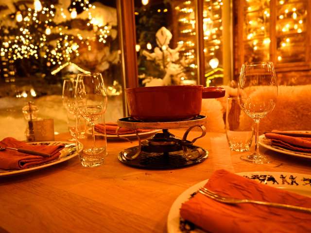 Experience a cozy evening in our rustic "Fondue-Stübli" during the winter season. Discover a variety of cheese fondues and raclette creations to choose from.
