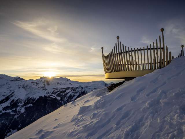 Before kings and queens can celebrate their triumph, they have to embark on an educational journey. This is also the case on the Männlichen. Although... Here, the path to the summit is already triumphant. The view of the Eiger, Mönch and Jungfrau triumvirate is indescribable. The Royal Walk takes you from the Männlichen mountain station to the summit of the Männlichen. What begins at the Königspforte ends in the summit realm. In between are 120 exciting metres in altitude, peppered with lots of interesting facts for young and old. By the way: not only can you hike like royalty, but you can also take a royal gondola ride up the Männlichen? On the open-air balcony of the Wengen-Männlichen aerial cableway. What are you waiting for?