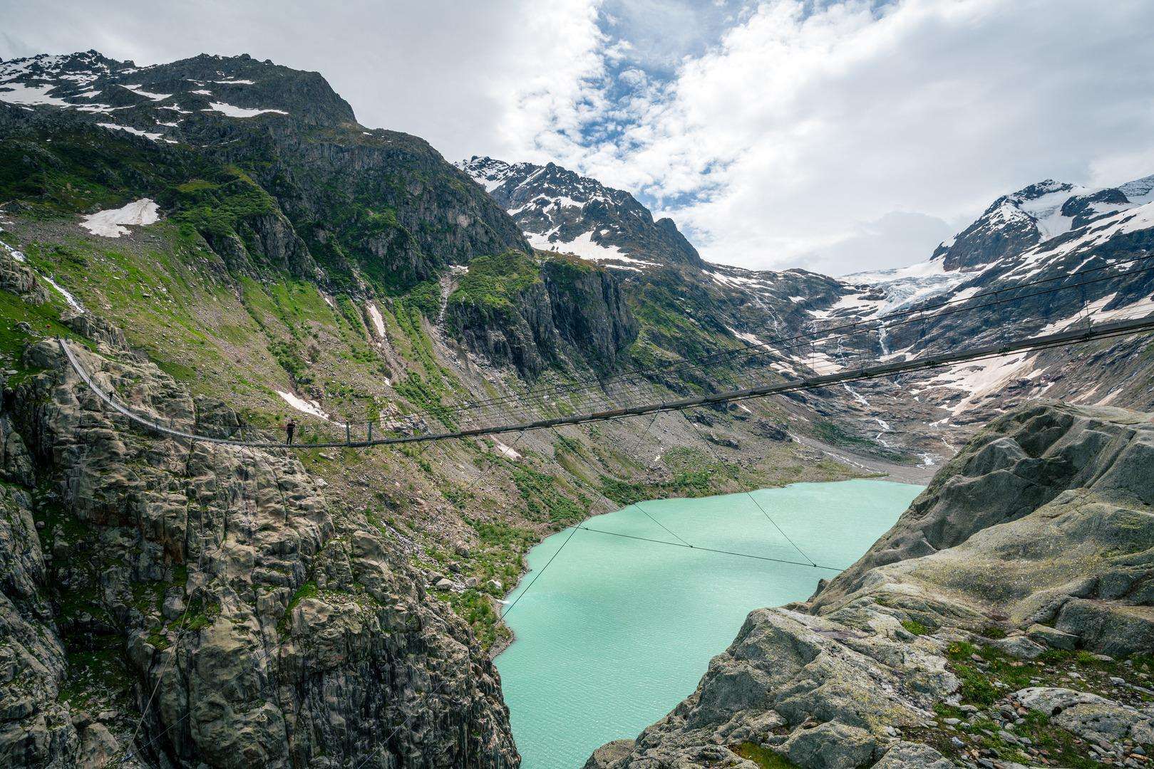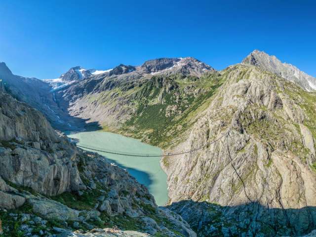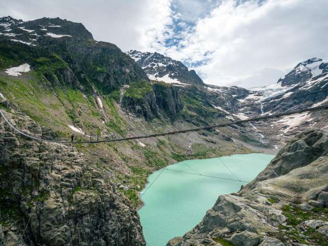 The 10-minute ride takes you over the Triftwasser river and up to the starting point for the 1.5-hours hike to the highlight of the Trift region – the Trift bridge.