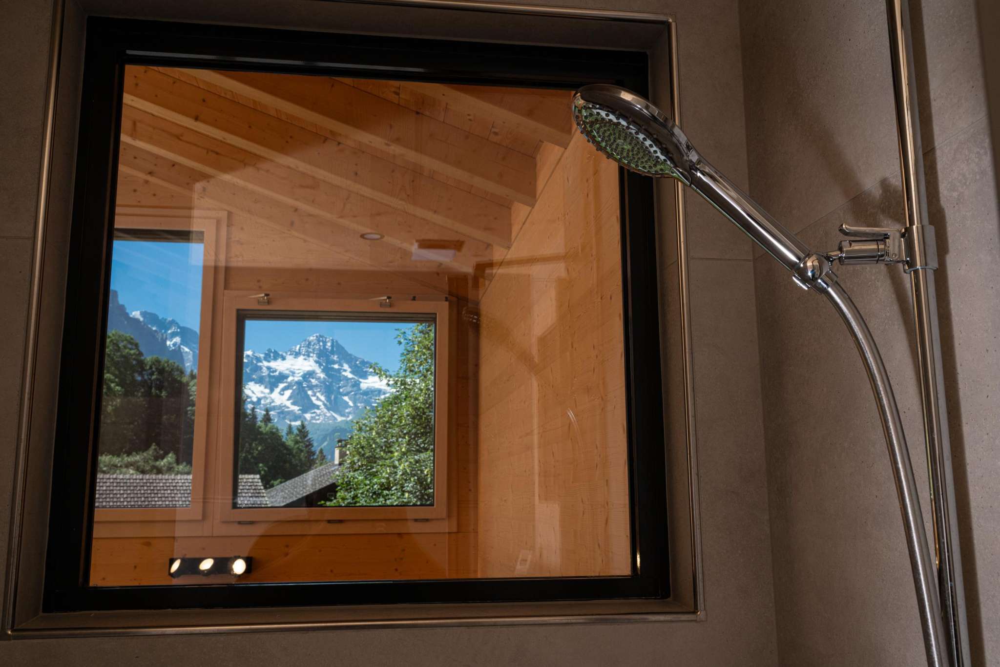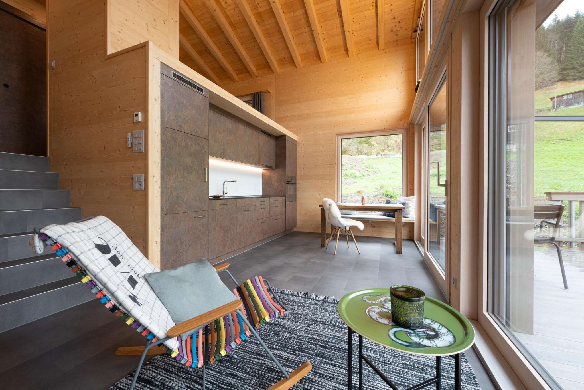 Au milieu des montagnes, très calme avec une grande terrasse et un terrain.
