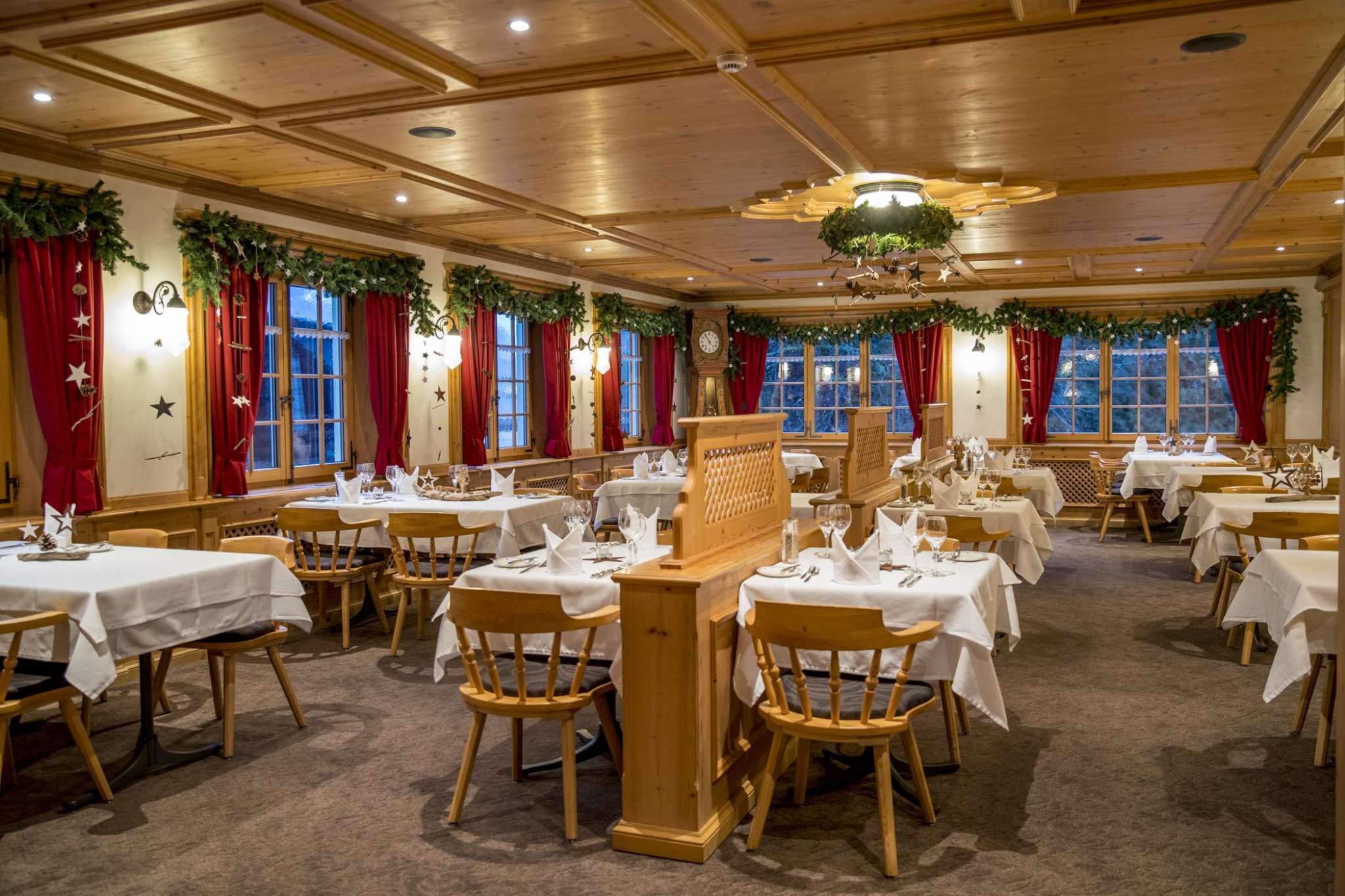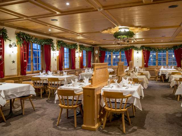 Cuisine de haute qualité. Des plats simples aux menus à plusieurs plats. Salles décorées dans le style chalet. Très grand choix de vins.
