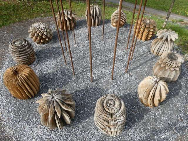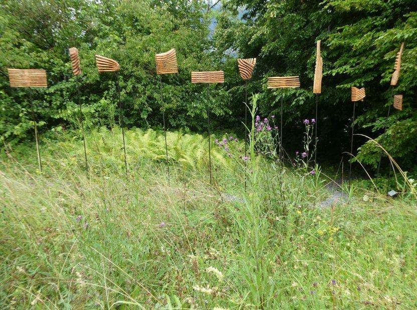 Les sculptures exposées, de préférence dans le sens constructif, offrent un contraste saisissant avec cette idylle et peuvent être découvertes sous les angles les plus divers grâce à la modulation du terrain.